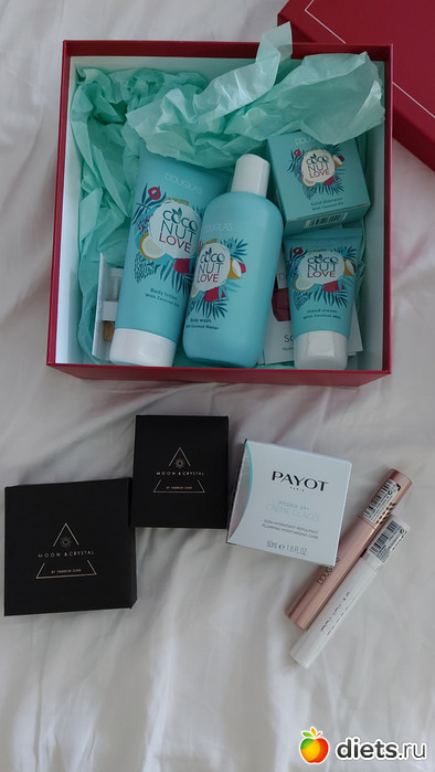 Уходовая линейка с запахом кокоса однозначно пойдет в ход. Крем Payot уже дарили они мне, понравился. Тушь и база под тушь - посмотрим. Больше всего понравился пробник духов, планирую купить полноразмерную версию