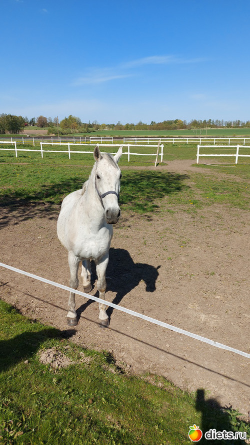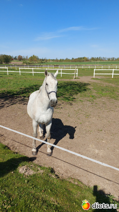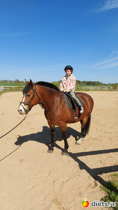 Конь потел, наматывая круги, муж ждал, но так и не дождался, дочка все отведенное время выкатала, уже и следующие клиенты подошли, а дочку все было не снять с коня