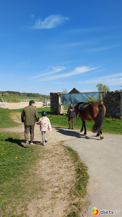 Вообще в путевке указывалось катание 4-х персон, но конь нам был выделен один. Муж тоже хотел кататься, но дочка как залезла на коня, так ее было оттуда не согнать