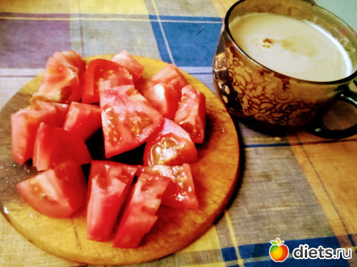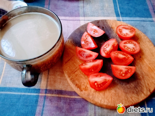 в 9 утра съела один большой помидор с солью и кофе с молоком, на обед в 14.30 съела ещё 3 маленьких помидора и выпила чай для похудения Тростинка называется, всё это время пила кофе с молоком, я прям не могу остановиться очень много пью воды, знаю что это плохо, но выпиваю больше нормы аж по 5л а то может и больше и это очень плохо, нужно менять своё рвение и желание много пить...