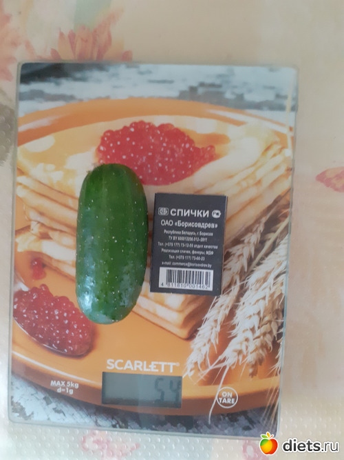 Это огурчик 54 гр. ( вес спичек оттарен). Вряд ли Лена ограничилась таким малюсеньким огурчиками одним