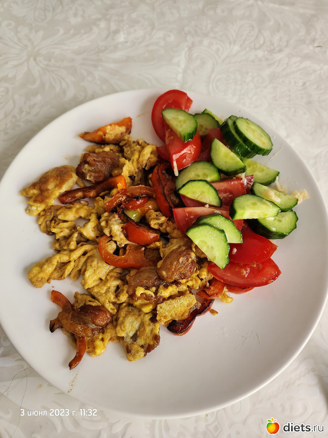 • сало с яйцами, овощи