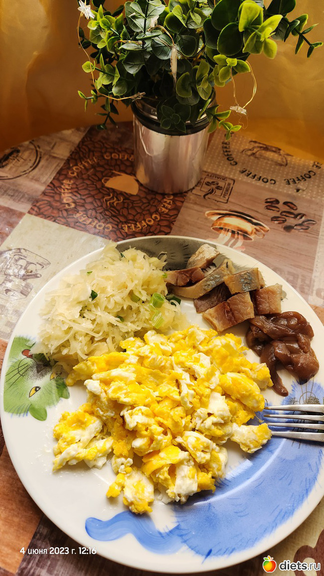 • яйца, селёдка, квашеная капуста с луком и маслом