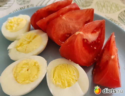 Мой завтрак - 2яйца и помидор (заменила апельсин, не считаю нарушением)