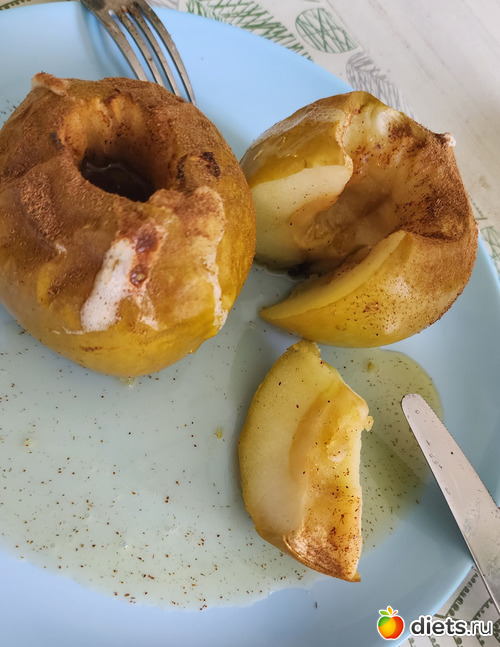 Мой обед - 2 запеченых яблока с мёдом и корицей, 5 орехов макадамии
