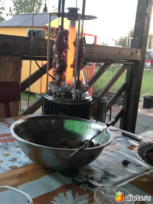 жарили мяско на электрошашлычнице и сразу его ели. Вкусненько. На запах сосед прибежал с "Лимончелло" собственного производства. Даже баню не топили, обошлись летним душем.
