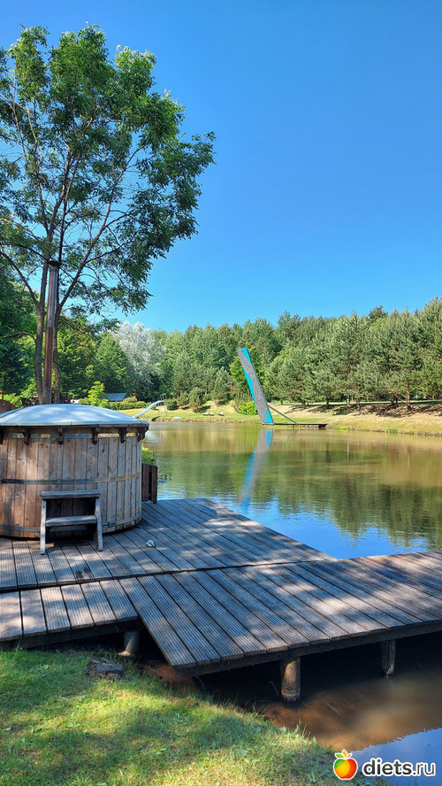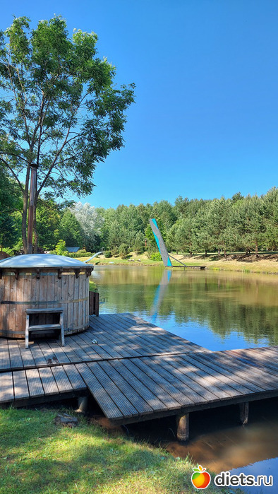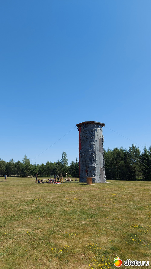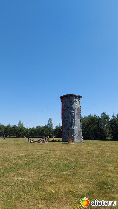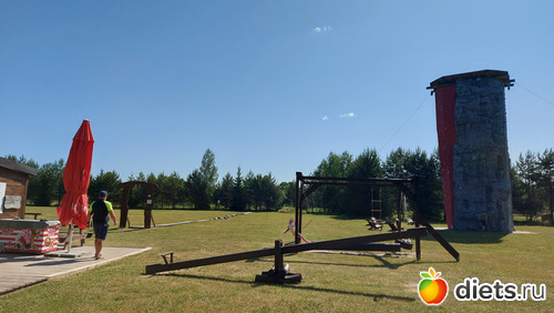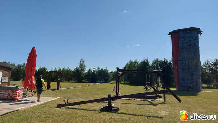 Территория красивая, много столиков, беседок, стендов и тп. Обратите внимание на вышку для скалолазов над водой