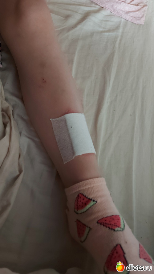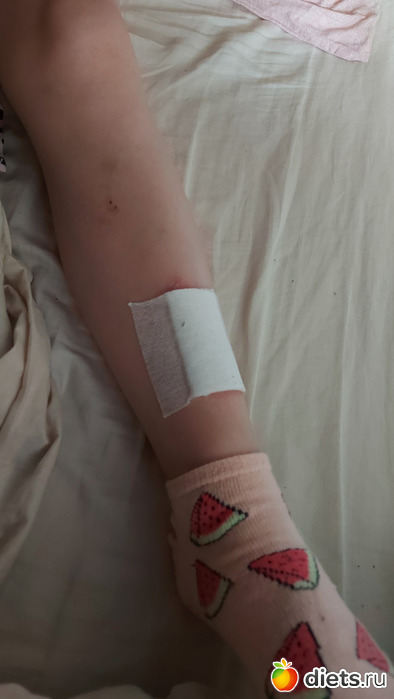 К врачу не возили, только в аптеку, там ей обработали рану и сказали, чем мазать. Купили коллоидные пластыри. Сказали, заживет за месяц, если не мочить. Под вопросом плавательный лагерь, который через 2 недели