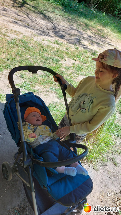 Отличная фотка и те, где малышок с дочкой загорают и Дуся рядом с коляской стоит.
