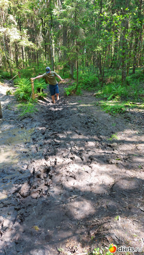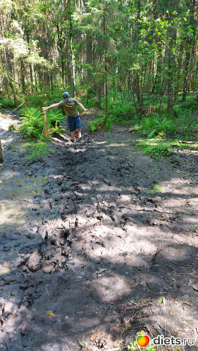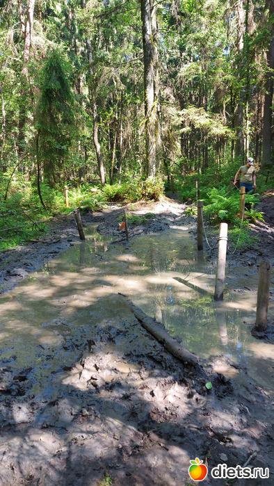 Любимый отрезок мужа - болото с ямами глубиной больше метра