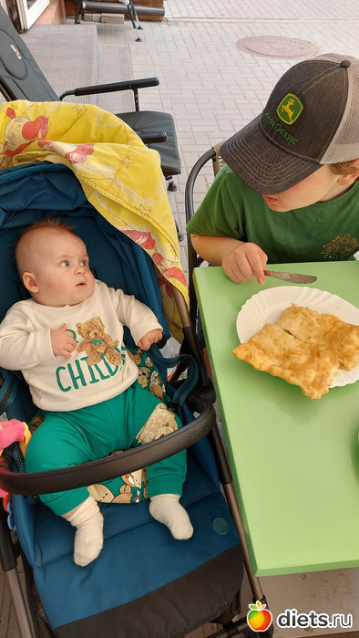 Малышок реально настроился на чебурек.