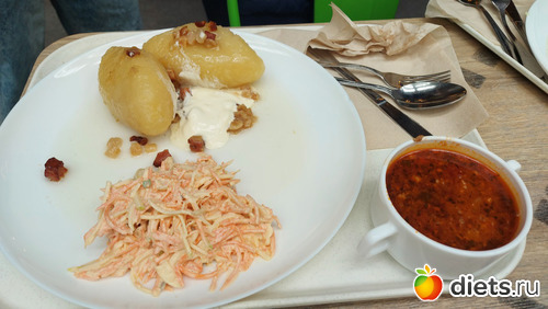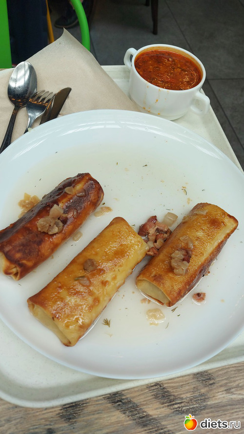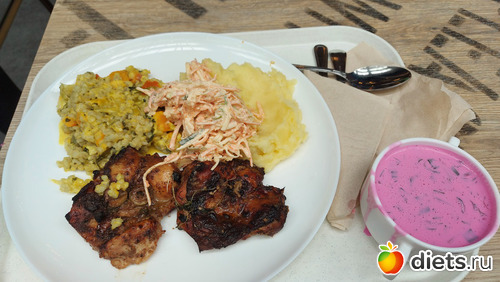 Я из всего этого сьела 1 суп с мясом, 1 блинчик, полцепелина, четверть от курицы, весь перлотто и чуть салата.
