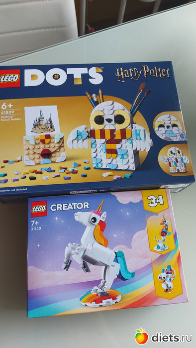 Лего-единорог в подарок подружке, лего-сова из Поттера доча купила на карманные