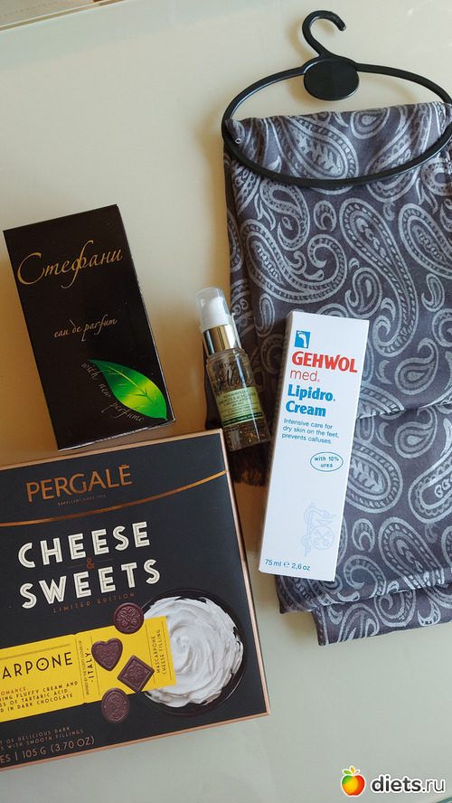 Сыворотка Витекс, крем для ног (у меня уже есть такой), шарфик вообще не в моем вкусе, парфюм вообще не в моем вкусе, сорри, не смогу пользоваться