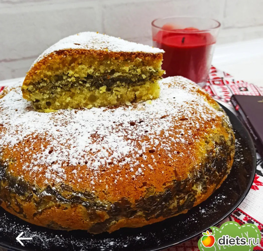 Пирог немного остудить прямо в чаше, вынуть с помощью тарелки, перевернуть вверх дном, посыпать сахарной пудрой. Пирог подаем на стол с чаем, кофе или молоком. Приятного аппетита!