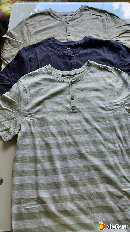 Футболки с пуговичками, раньше не было у него таких, захотел попробовать, комплект из 3-х шт, H&M, 11/28 евро