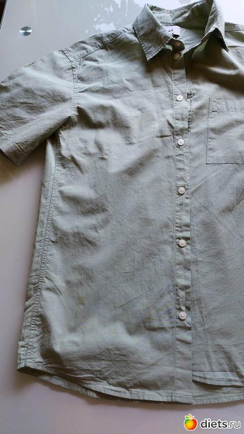 Рубашка с коротким рукавом, разбеленный хаки, хлопковая, H&M, 12/21 евро