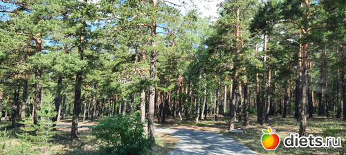 дорога к хотелю идёт через сосновый бор, там дорожки