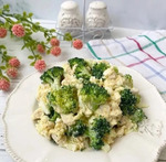 Нарежьте капусту небольшими соцветиями и добавьте в миску к курице.
