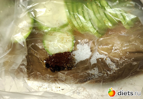 Перемешала всё в пакете и оставила на полчаса в тепле, затем на полчаса убрала в холодильник.