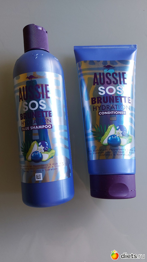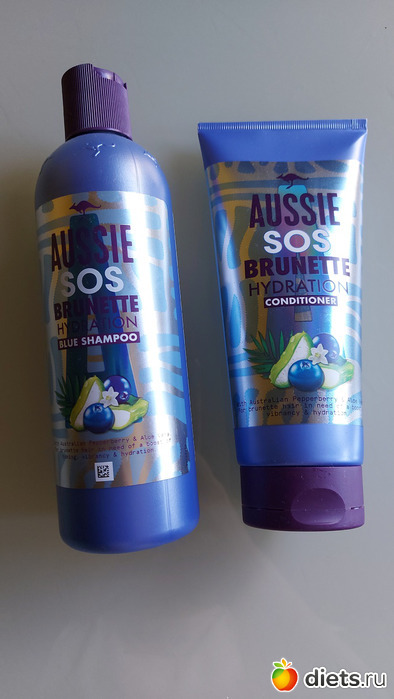 *шампунь и бальзам Aussie для брюнеток, увлажняющие (шампунь темно-синий, бальзам голубой) - не подошли. Бальзам жирнит, от шампуня чешется голова