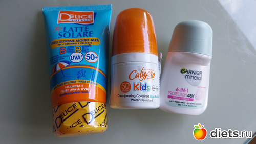 *SPF 50+ детские (буду пользоваться и сама), дезодорант. SPF с роликом голубого цвета, что б видно было, куда наносишь