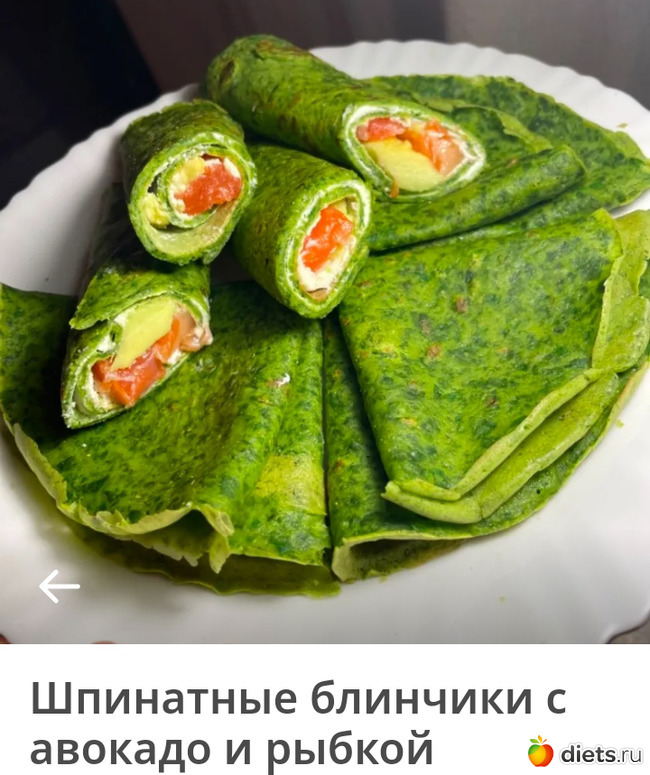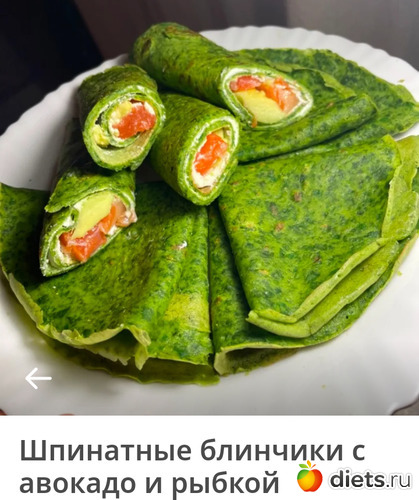 Diets.ru Шпинатные блинчики с авокадо и рыбкой