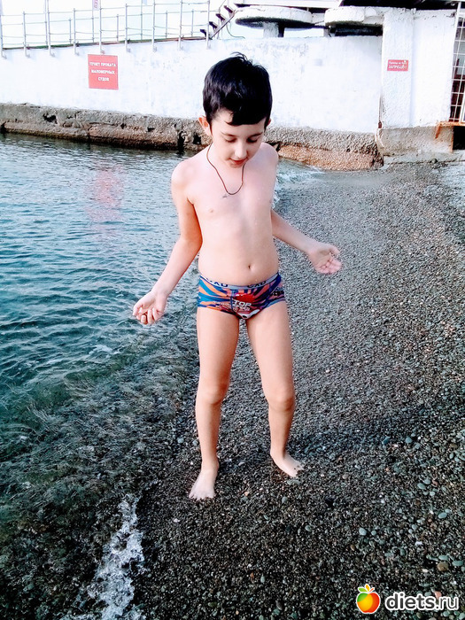 Вчера утром ходили вместе с сыном на море в 7.30 были уже на пляже ходили пешком туда и обратно... Вода прохладная местами теплая прозрачная как слеза солнышко чуть препикает пляж к 8 часам был забит, отдыхающих много! Покупались мы с сыном около 30 минут и пошли на детскую площадку там я сидела на лавочке а сына играл на площадке, детей никого, все на пляже...