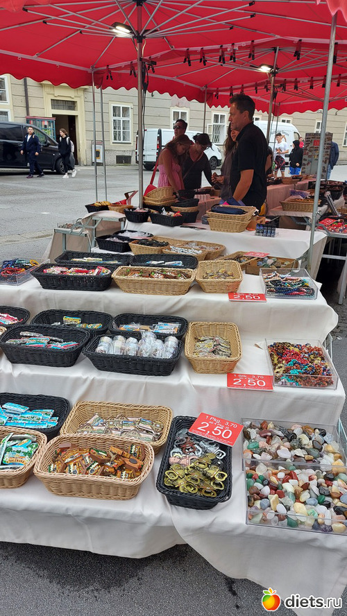Спустившись в магазинчике купили конечно конфеты Моцарт, они тут на каждом углу