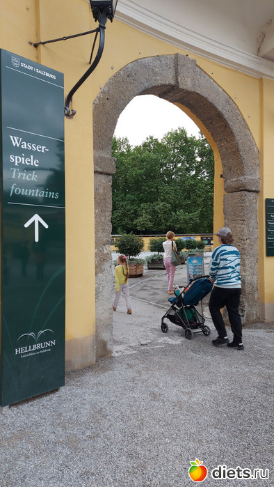 Едем дальше в Хельбрунн. Детям мы не говорили, что их ожидает - а именно, экскурсия по Потешным фонтанам