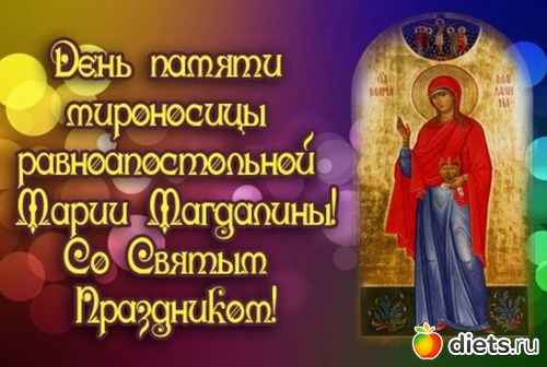 За Христом, нас ради от Девы рожденным, досточтимая Мария Магдалина, последовала ты, Его повеления и законы соблюдая. Потому, в сей день всесвятую твою память празднуя, мы грехов прощение по молитвам твоим получаем.