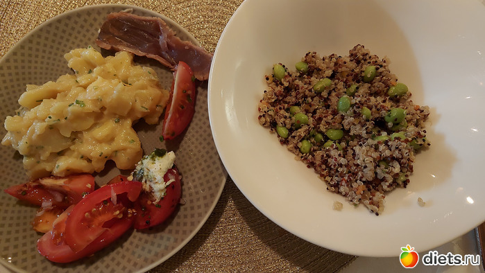 Салаты: из киноа, картофельный, капрезе, сырой тунец