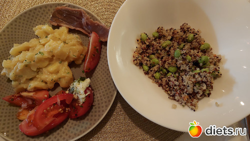 Сьела кашу с вареньем, жареное яйцо, омлет, горячий бутерброд, сок, макиато. Все, готовы выезжать