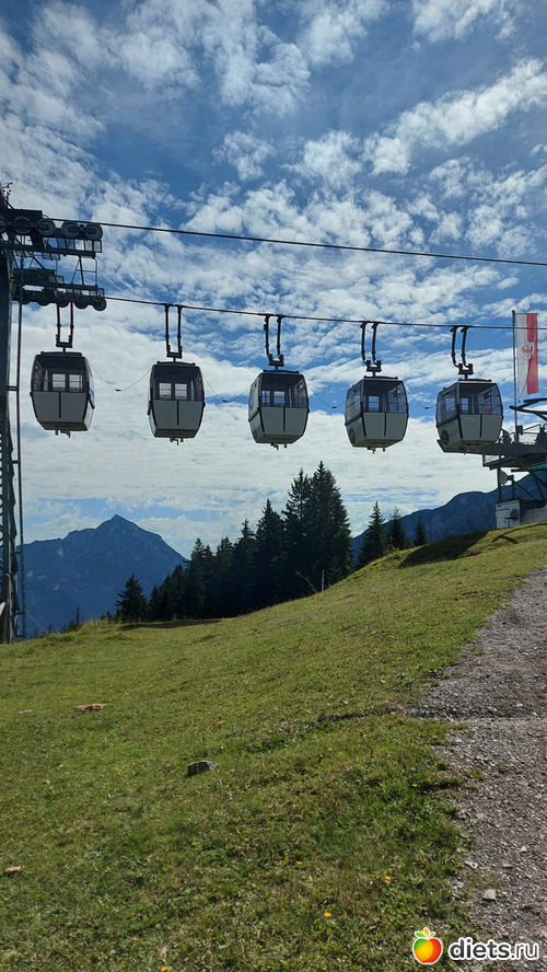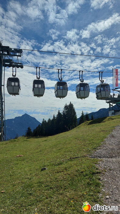 Поели и отправились подниматься на Карвендель. Вот эта канатка, она видна из окна номера