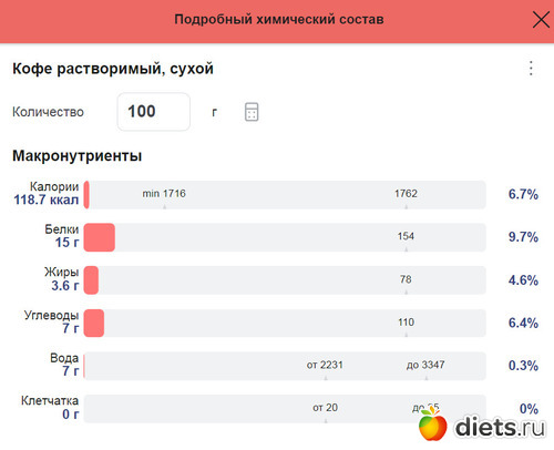 Лена, кофе растворимый ты имела в виду сухой, а взяла за базу уже приготовленый. Если сухой, то нужно там выбирать вот этот продукт: