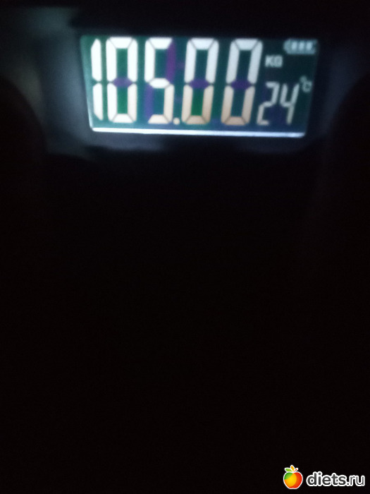 После уборной, я взвесилась и не расстроилась, так как знала, что вчера был перебор в ккалл перевела двойную норму, поэтому и привес в 600 г и вешу я на сегодня ровно 105 кг!