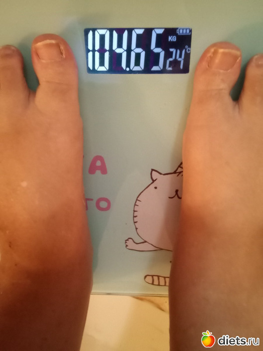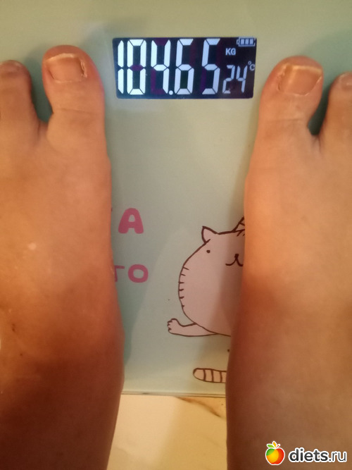 Diets.ru Добрый день девочки! Не выдержала решила написать ещё один пост! А вес всё же ушел и это после сна и вешу я на сегодня 104.650 кг!!!)))Я извиняюсь за ложную панику!!! Всё в норме!!!)