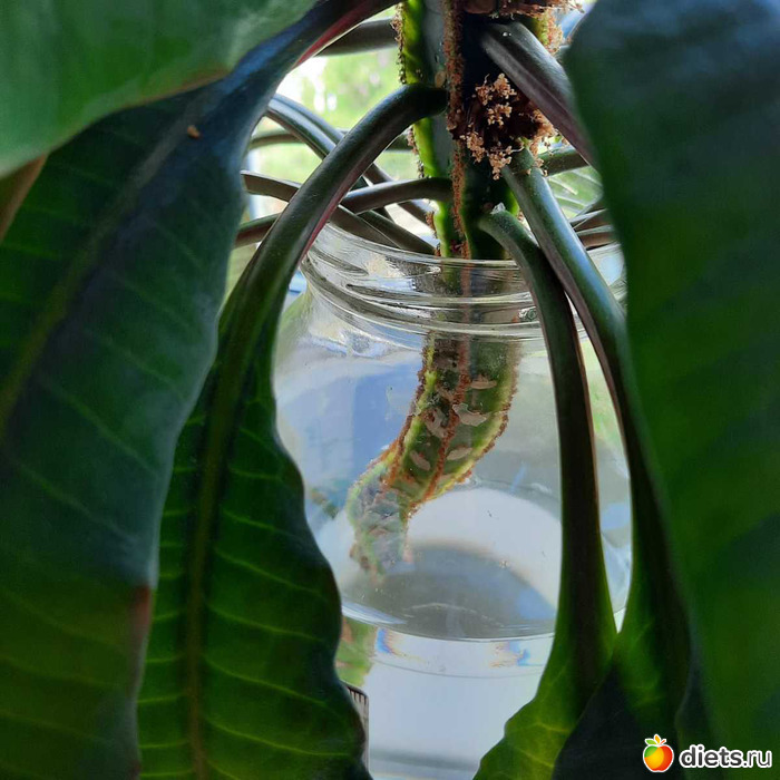 и одну пальмочку. которую я поставила в банку растить корни.