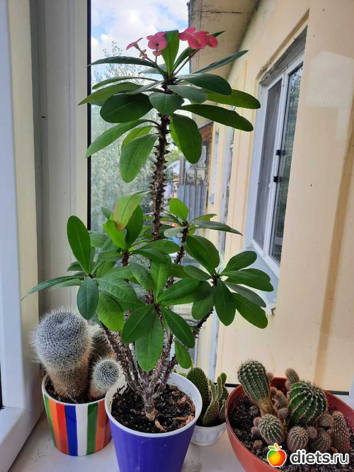 сплелись и было всё норм, правда, нечаянно заметила, что второй молочай таки засох, там такой кустище был, что незаметно было. всё лето на балконе эти оба как разрослись! и стал хилый молочай тащить за собой вниз драценку мою. непорядок. они оба такие огромные, что как разъединять из косы буду, не знала, но глаза боятся, а руки сделали!