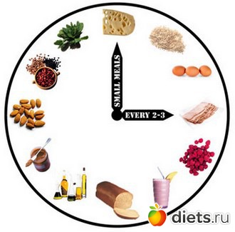 Дневное меню должно быть разбито на шесть приемов пищи (три – основные, остальные – перекусы).