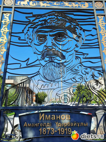 а сначала по улице Амангельды Иманова, зашли в кулинарию, взяла хрустящую слоёную трубочку с курочкой, в беседке съела, водицей запила