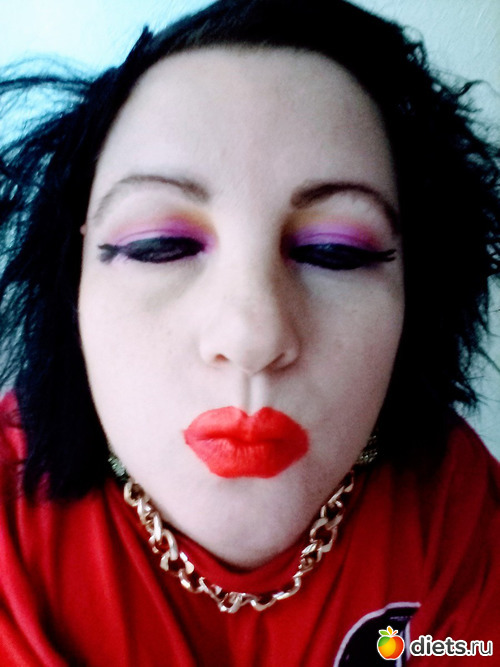 Понимаю, что Вы хотите быть очень яркой. Блондинка - брюнетка - все хорошо. Но попробуйте сделать аккуратный макияж. Пусть яркий, но чтобы он не выглядел размазанным .