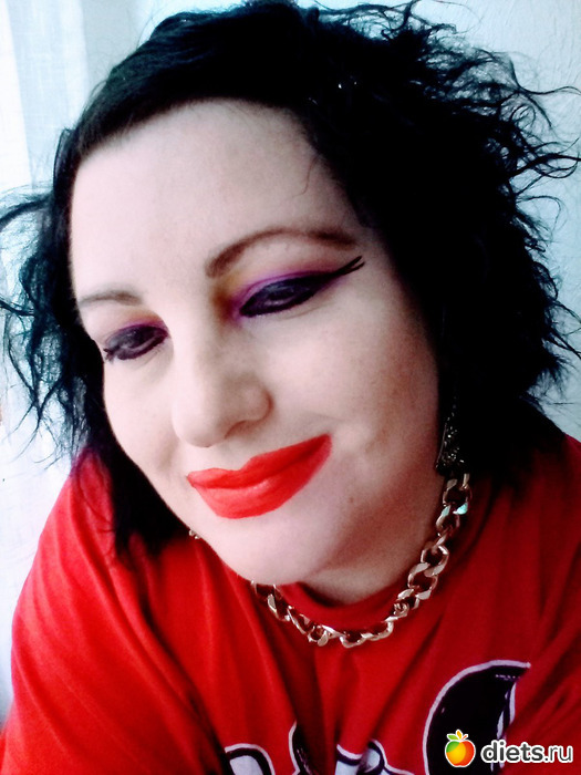 Понимаю, что Вы хотите быть очень яркой. Блондинка - брюнетка - все хорошо. Но попробуйте сделать аккуратный макияж. Пусть яркий, но чтобы он не выглядел размазанным .