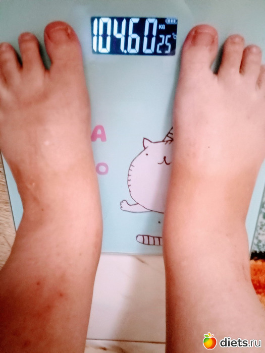 Проснулась я сегодня в 5 утра, взвесилась и вес был аж 105 кг, но я решила, что взвешусь ещё после прогулки, так как вчера у меня был жор в 21 час вечера наелась всего подряд!!! До вечера сидела на воде только кофе с молоком и вода с лимоном, но потом сорвалась и пошла есть варёную картошку 200 г, котлеты 150 г, конфеты коровка 200 г, виноград 400 г, потом ночью встала и наелась копчёной рыбы салаки 150 г, вообщем сорвалась и наелась всего подряд!!! Поэтому и прибавка в весе... Сегодня в сотый раз пробую худеть на одной жидкости хочу за короткий срок сбросить 5 кг, точнее за 2 недели!