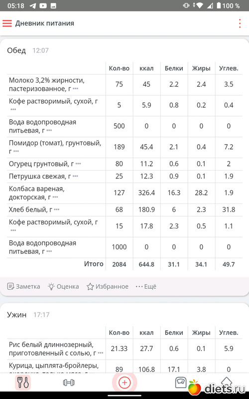 У меня тоже сейчас период жора. Наела вчера 2300 ккал. Но учитывая, что спорт час на дорожке, то даже легкий дефицит. Будуд пок адогонять за счет активности