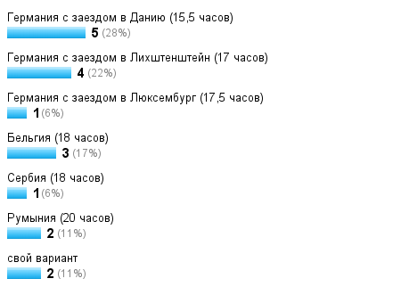 *ехать из Литвы - расстояние важно, я не готова сутками сидеть в машине. За первую ночь можем переехать всю Польшу, за второй день доехать до первой точки в Германии/Чехии/Словакии (в зависимости от маршрута) и дальше передвижения максимум 4 часа в день. Чем ближе, тем лучше, расстояние в часах до самой далекой точки указала в скобках
