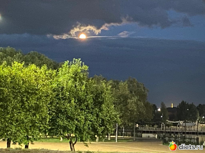 парк покидали, когда уже луна из-за облаков выглянула, такая красавица. фото мужа. его айфон лучше смог, мой самсунг не вытянул всю эту красоту.
