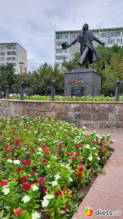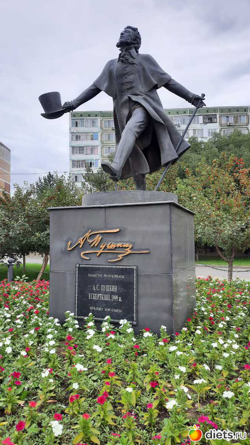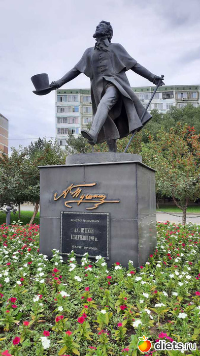Дошли и до памятника Пушкину, у него всё нормально, кто переживал)))) весь в цветочках, по-прежнему куда-то бежит.