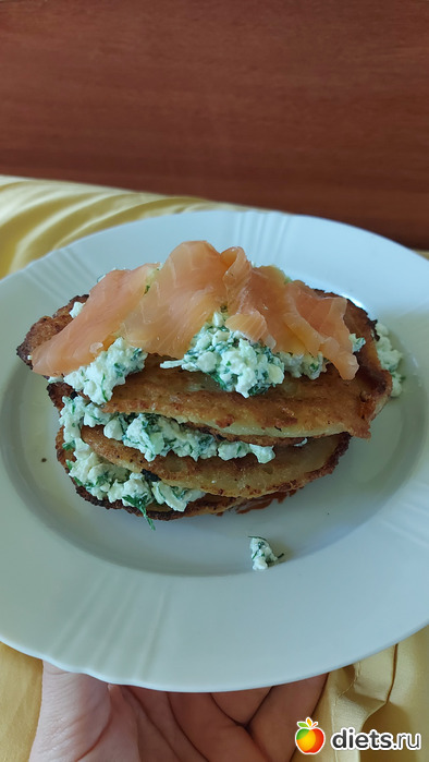 Подарков не дарили. Хотели сходить в общепит, но не зарезервировав столик заранее в этот день не попасть. Хорошо, что не резервировали - из школы сына мы вернулись только в 13 ч, очень много времени заняло фотографирование каждого класса. Думали заказать блюда на дом службой доставки. Листая меню нашли интересное блюдо, но муж взялся готовить сам: драники с соусом из творога и лососем