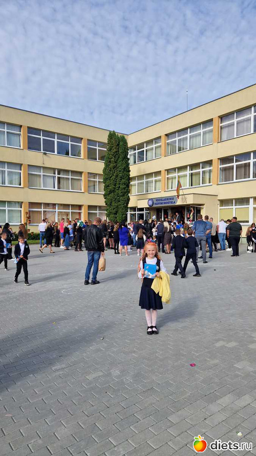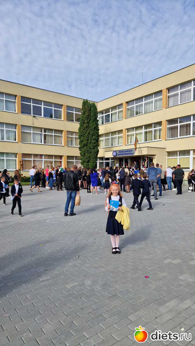 Ну а муж сходил с дочкой в ее школу. Там был концерт на улице. Муж гулял туда-сюда с коляской недалеко. В класс подниматься не стал. Я по мамскому чату, который снова, после двухмесячного перерыва, разрывается, все знаю, что там было. Учительница написала всю инфу. Мамаши накидали сотни фото и видео. Поскольку снимали они своих детей, моя мало попала в кадр. Дома перед выходом сфотографировала я сама